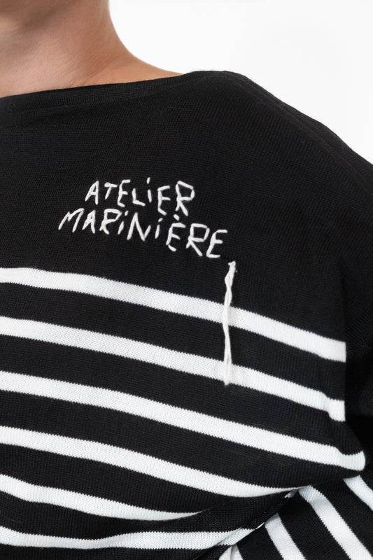 Atelier Marinière Signature Marinière, 100% Organic Cotton, Boat Neck, Black/White Stripes