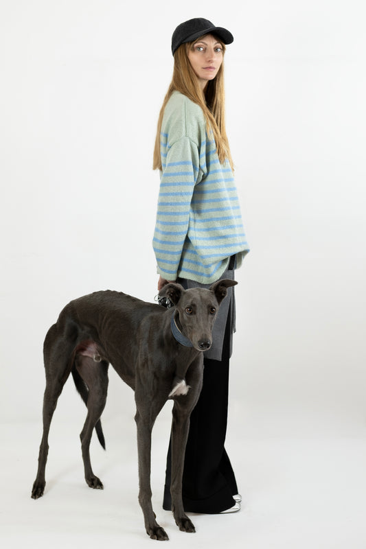 Women's Super Kid Mohair Sweater, Wasabi/Blue Stripes