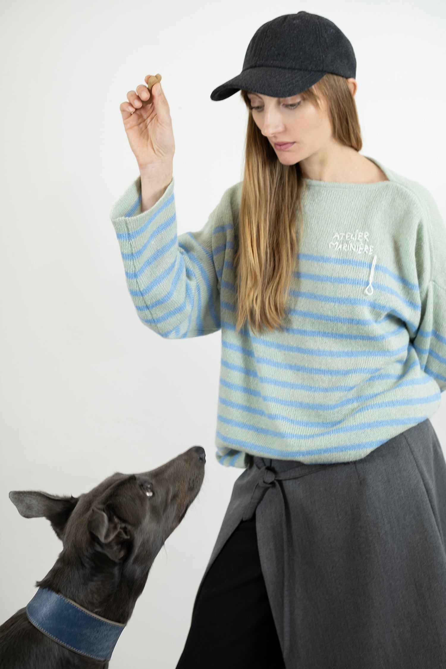 We took the idea of the classic marinière (also called Breton Shirt) and reworked it with a different intention: lighter, softer, and more fluid on the body. The stripes stay, but the proportions change — a looser cut, a slightly widened boat neck, and a fit that feels relaxed rather than strict. Super kid mohair gives the piece a refined texture and an ease that’s very different from the traditional sailor shirt. Familiar in spirit, redesigned in everything else.
