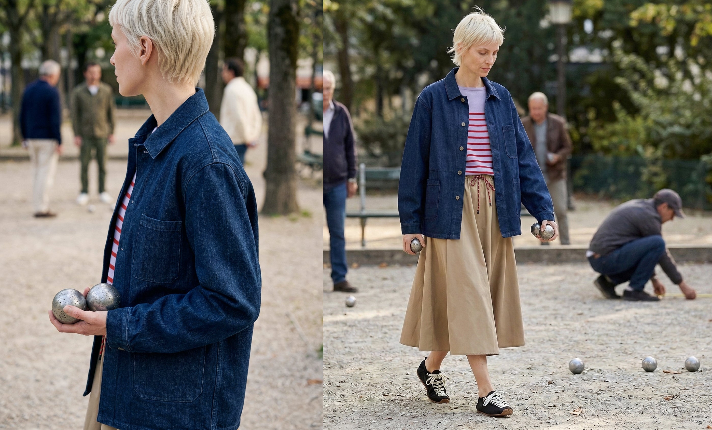 Known as the bleu de travail, it retains its three outer patch pockets and inner pocket.