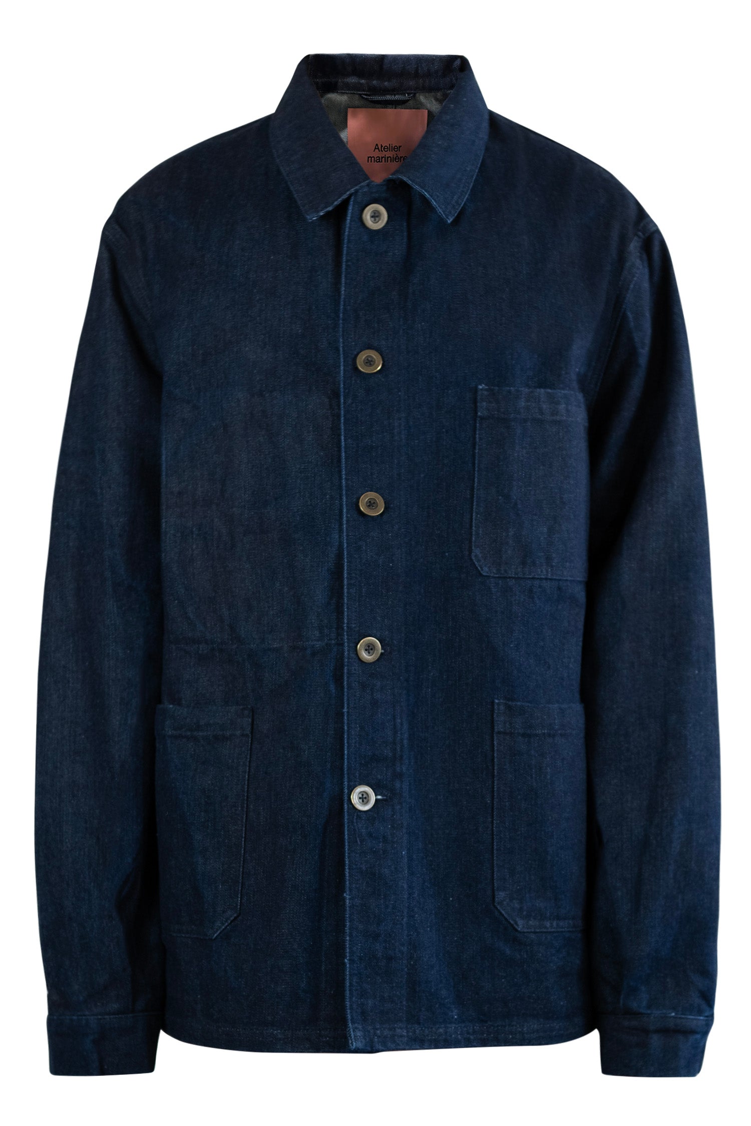 This women’s French Work Jacket by Atelier Marinière reinterprets the traditional bleu de travail through the character of raw Japanese denim.