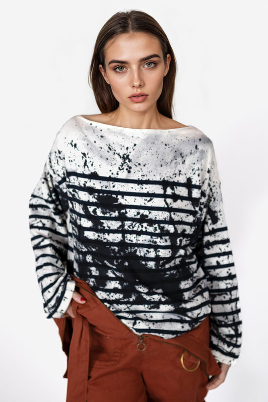 A timeless classic, reimagined with a bold and stylish twist. This limited edition of our iconic Breton shirt features a handcrafted "stained" treatment, transforming each piece into a one-of-a-kind fashion statement.